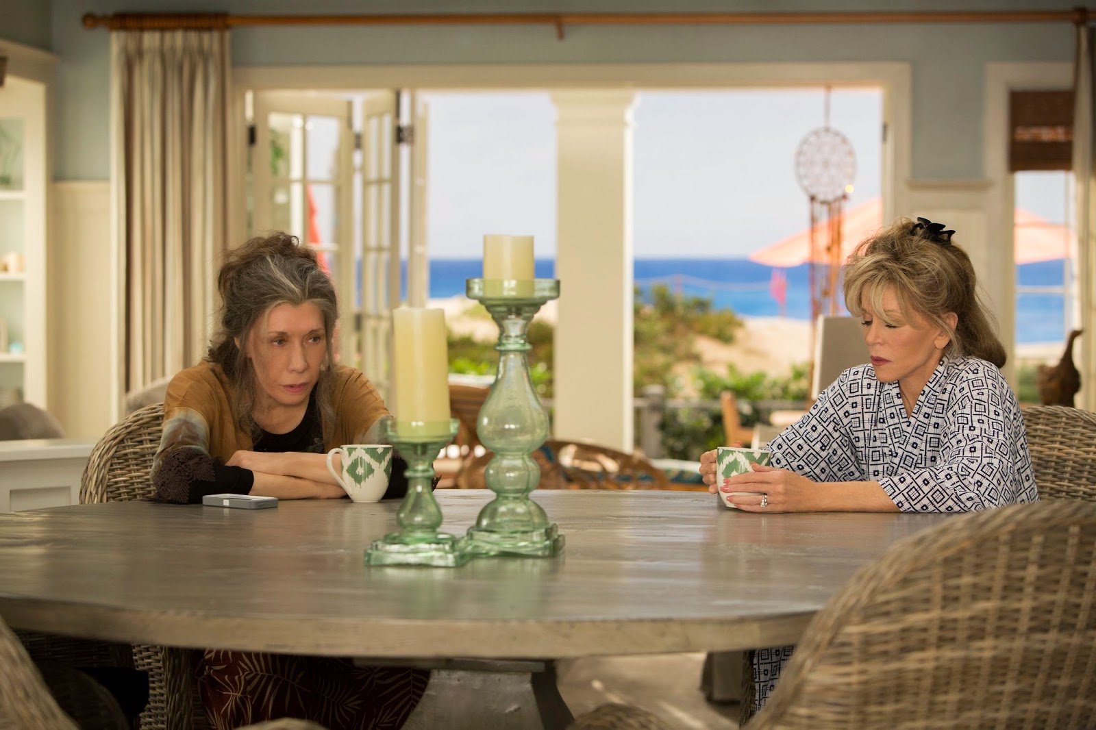 Grace and Frankie must put their rivalry in the closet and share the beach house while their soon-to-be-ex-hubands start a new life together and share a bed.